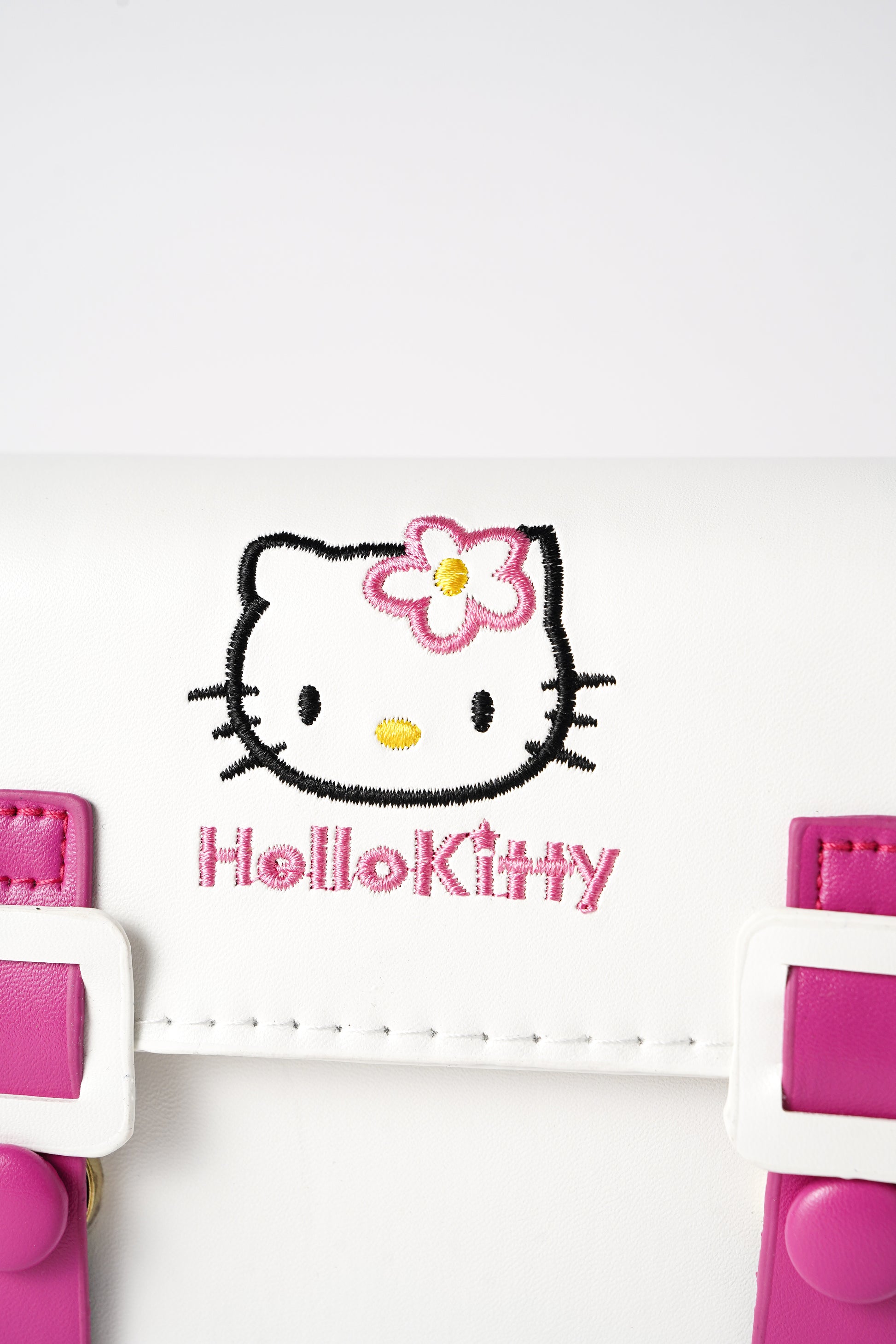Shop this adorable mini handbag featuring a white faux leather design, buckle straps, and classic embroidery. Perfect for kids, teens, and Sanrio fans. A must-have accessory for everyday cuteness or collectible display!