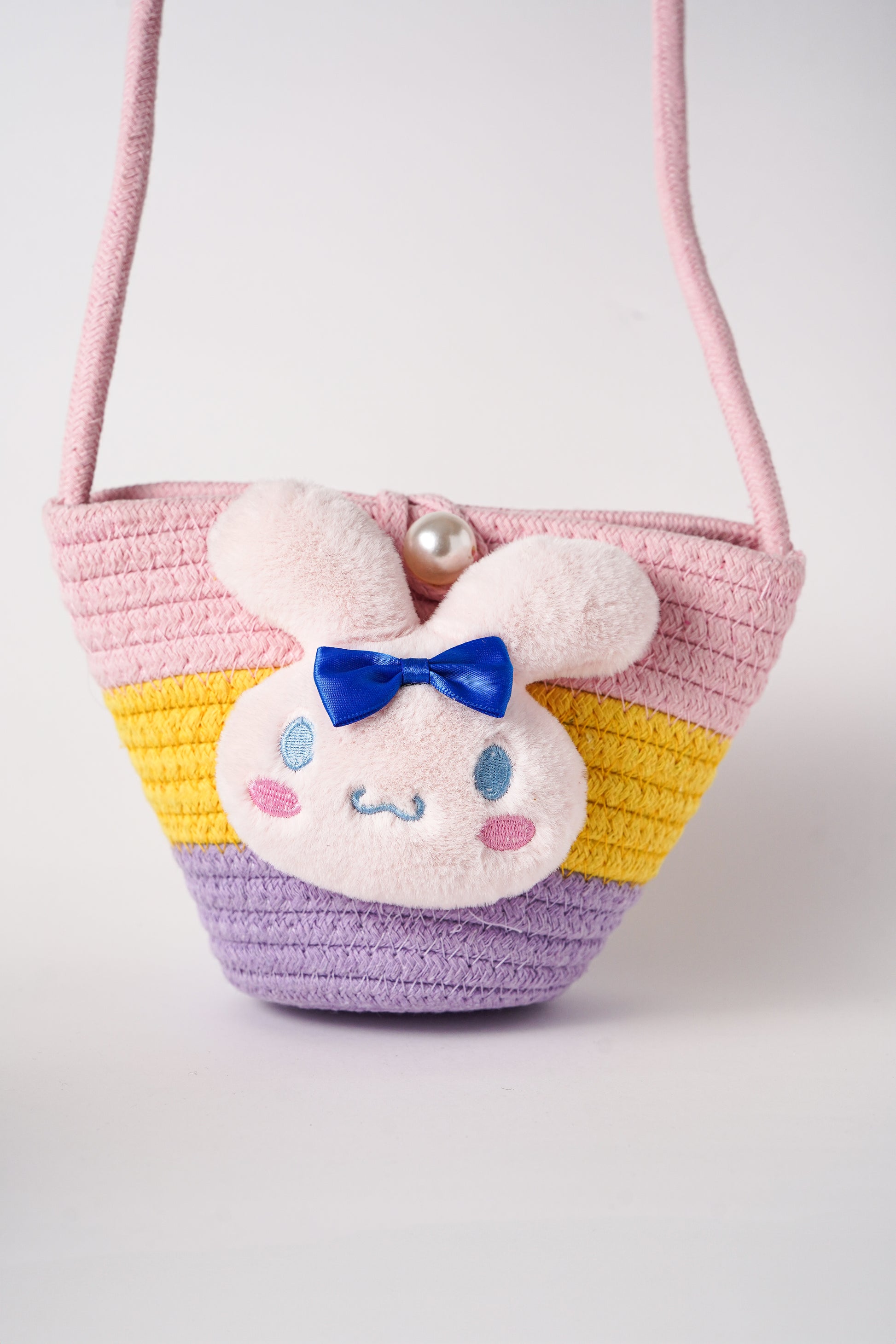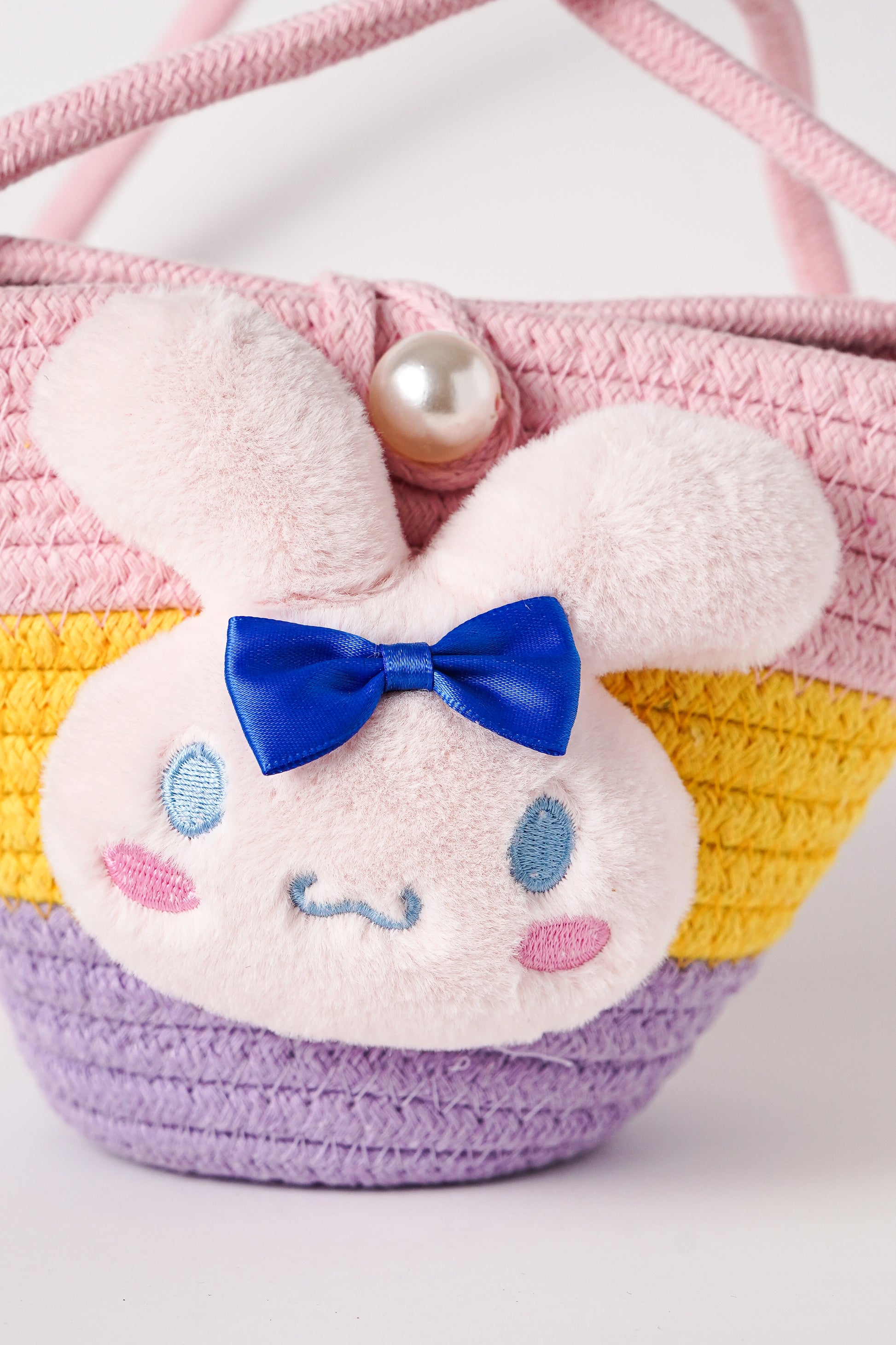 Adorable mini straw shoulder bag featuring a soft plushies, pearl accent, and charm. Lightweight and perfect for casual days, picnics, or gifting. A must-have accessory for girls, tweens, and kawaii fashion lovers looking to add a playful touch to their outfit.