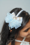 Style meets charm with this plaid bow headband, finished with tulle layers and pearl accents. A perfect accessory for girls' parties, photoshoots, or festive wear. Ideal for ages 3 and up.