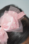 Add a touch of charm with this elegant headband for girls, featuring a layered satin and net bow adorned with delicate pearls. Perfect for parties, photoshoots, or everyday princess vibes. Comfortable fit for toddlers to pre-teens. Shop this statement hair accessory now at Petite & Posh!
