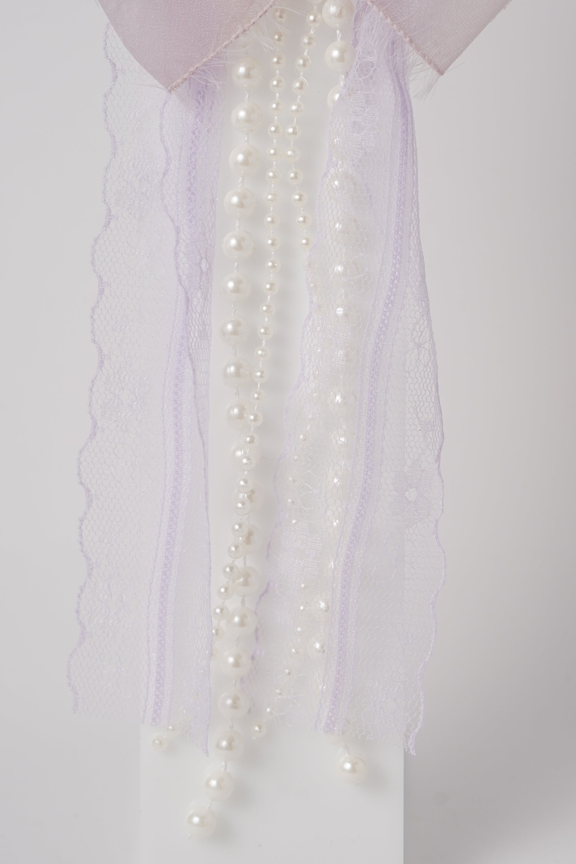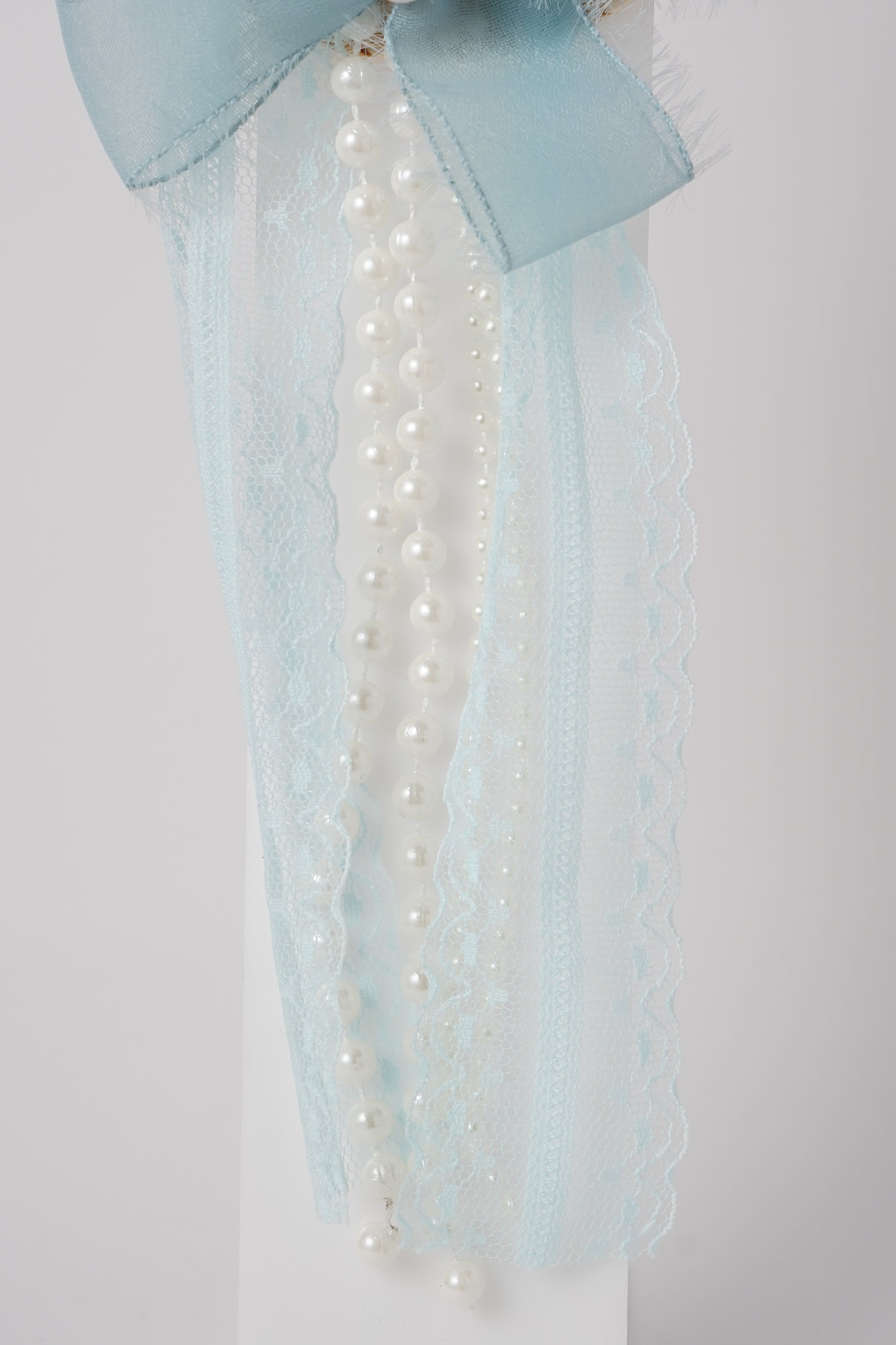 Store in a cool, dry place away from direct sunlight to maintain color and shape. Avoid contact with water, perfumes, or hair sprays to preserve the embellishments. Clean gently with a soft, dry cloth if needed. Handle with care to prevent damage to delicate beads, fabric, or decorative parts.