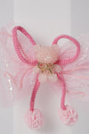 Glitter Bow Hair Clip with Pink Teddy & Pom-Poms Cute Party Hair Accessory for Girls