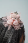 Add a touch of charm with this teddy bear hair clip featuring a plush pink bear, pearl flower details, and a sparkling crown. Designed with soft tulle layers, this cute hair accessory is perfect for birthdays, parties, photoshoots, or everyday playful looks for girls.