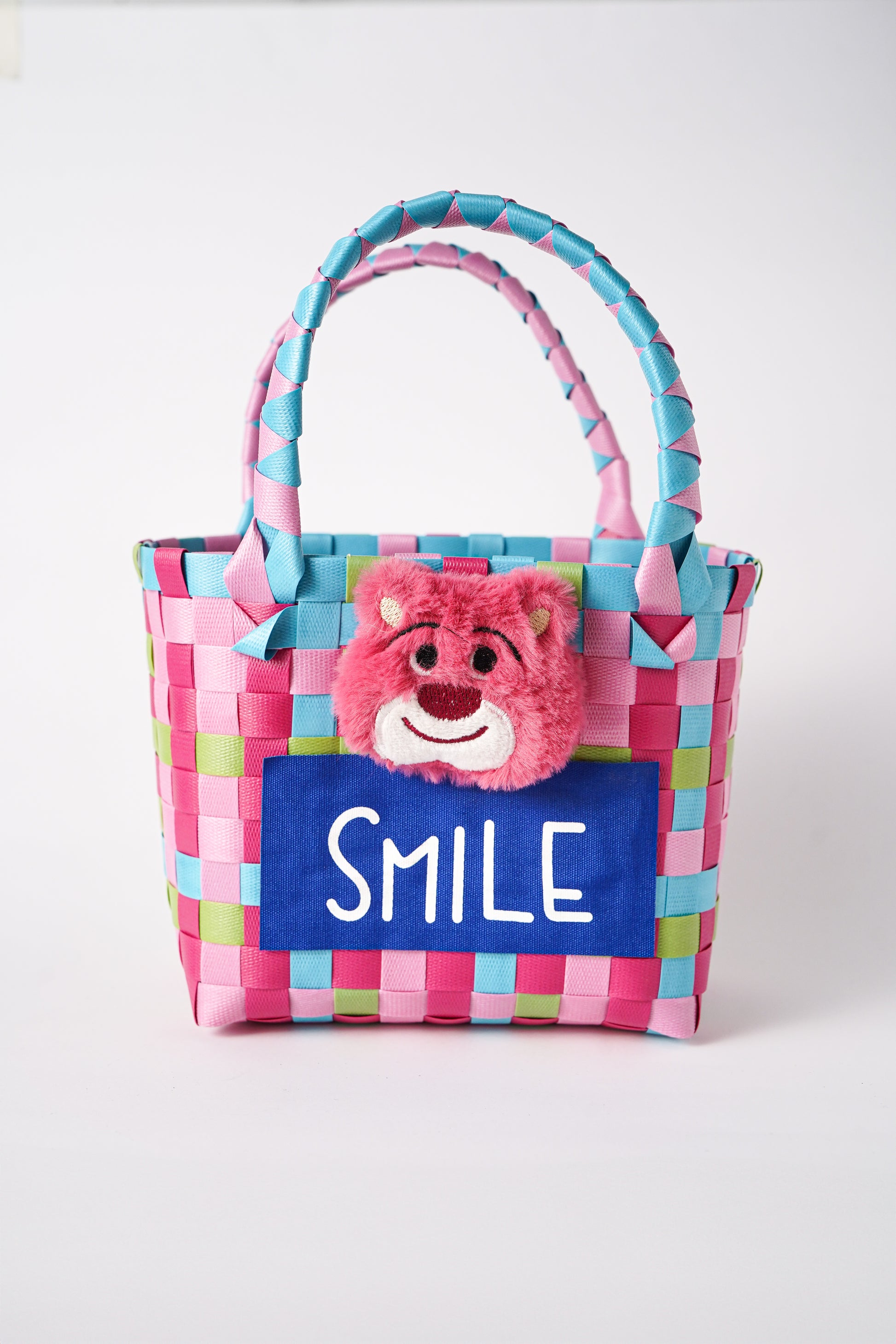 Brighten any day with these colourful tote bag! Featuring a cheerful checkered weave, plush smiling flower, and inspirational patch, this lightweight handbag is perfect for kids, girls, and anyone who loves cute, colorful fashion. Great for casual outings or gifting.